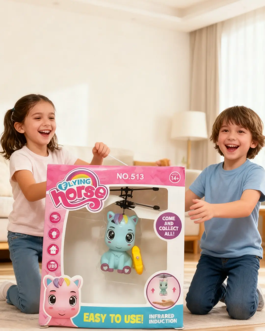 El Flying Horse se eleva solo al detectar tu mano, ofreciendo un vuelo seguro y controlado. Ligero y fácil de manejar, convierte cualquier espacio en un juego lleno de diversión y fantasía.