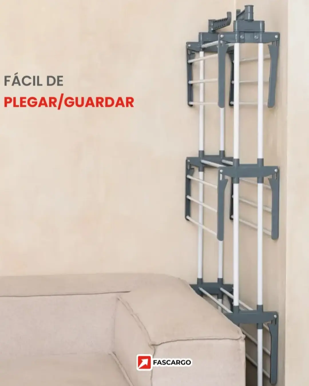 El Tender Vertical de 3 pisos te permite secar más ropa ocupando menos lugar, manteniendo tu hogar ordenado y funcional.
